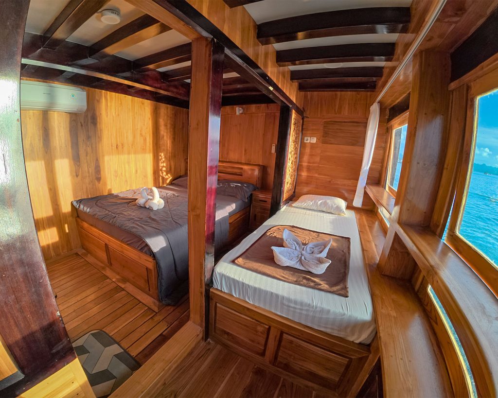 Featuring 12 cabins and a capacity of up to 50 guests, Alfathran 3 is well-suited for open trips from Lombok to Labuan Bajo (or vice versa). Its generous communal areas and practical cabin layout make it an ideal choice for multi-day expeditions, offering a social onboard atmosphere while exploring the best of eastern Indonesia by sea.